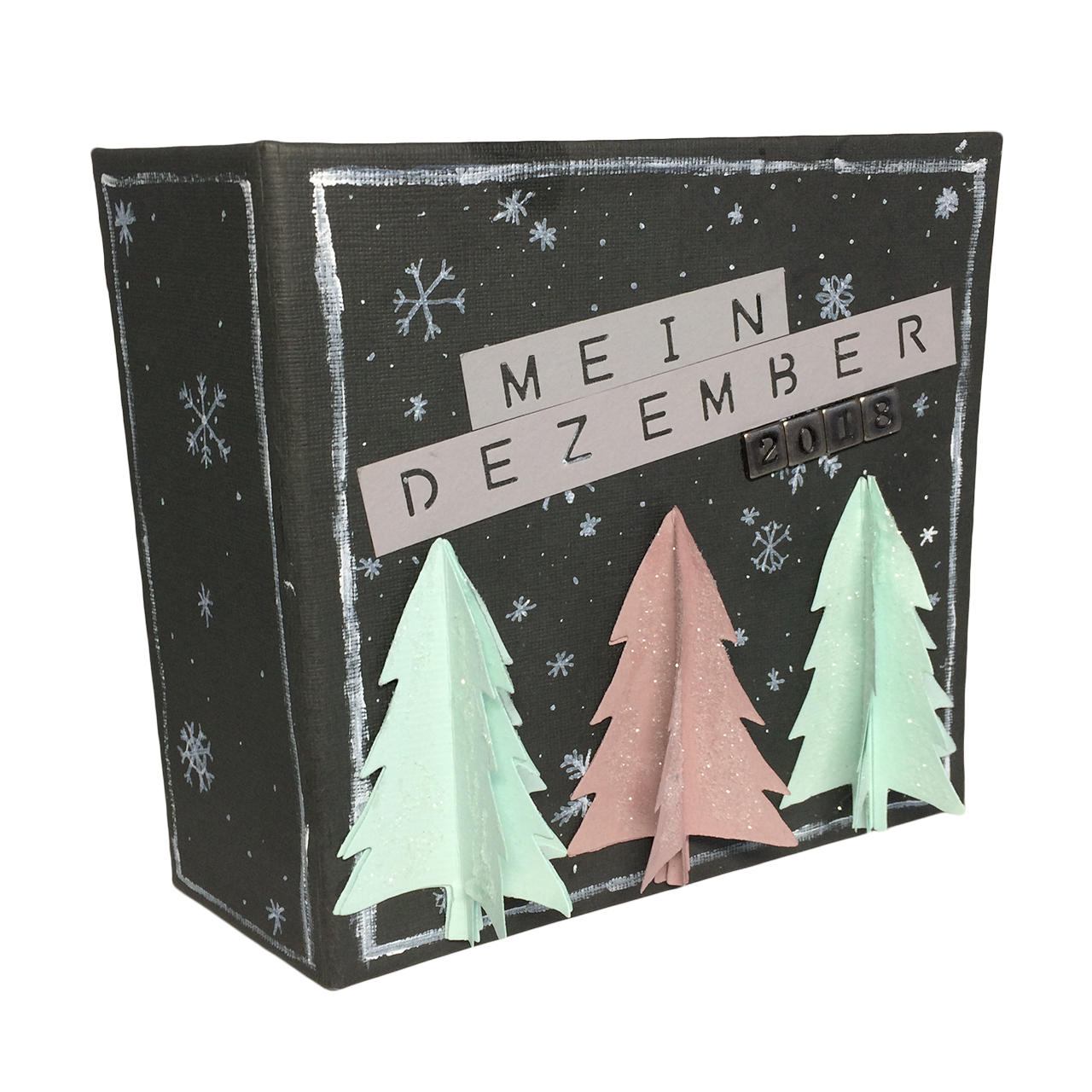 Die schöne Tannenbaum Stanze musste ich unbedingt testen, so wurden die Stanzteile gleich auf dem Cover eingesetzt.